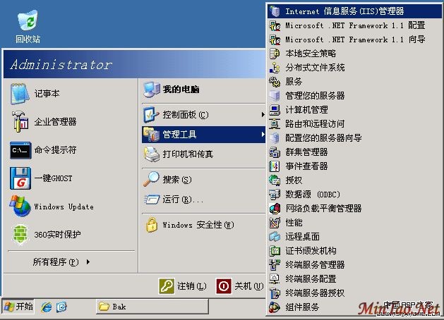 单击“开始”—“管理工具”—“Internet 信息服务(IIS)管理器”,打开IIS管理器;