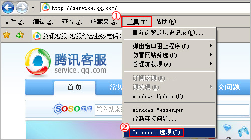 打开任何一个网页,点击网页上方的“工具”=》“Internet选项”,如图: