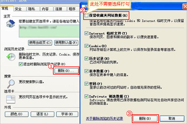 在“常规”中点击“删除”=》将“保留收藏夹网站数据”前的勾取消=》“删除”,即可成功清除缓存。