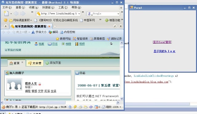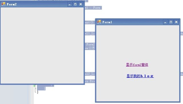 3、在LinkClicked事件处理程序中,调用Show()方法以打开项目中另一窗体,并将LinkVisite属性设为True。LinkVisite属性(链接显示访问过为True,显示没有被访问过为False)