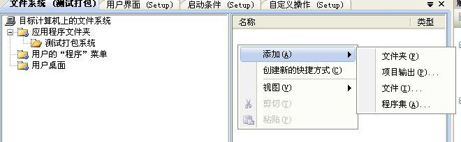 3、在“测试打包系统”文件夹上右键-->添加-->项目输出
