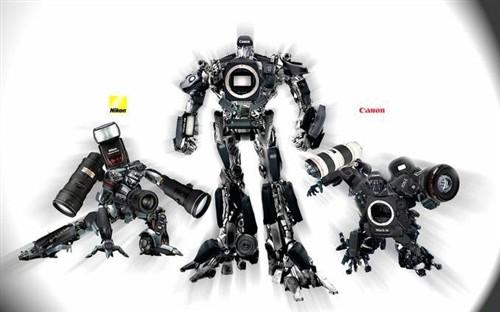还是佳能400D比较逗,右手架着胶卷,左手架着两节AA电池,都是它用不到的,变形之后,塞到哪儿啊?而且如果屏幕上贴了保护膜,是不是就变不了型了?