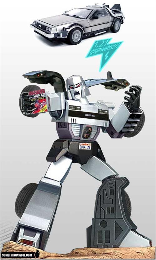《回到未来》里面的时空车也能变形,而且长得狂像威震天