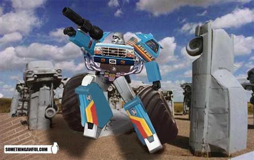 下面这张图能看出来么,是大脚越野车的变形金刚版,个人以为改得还不错。