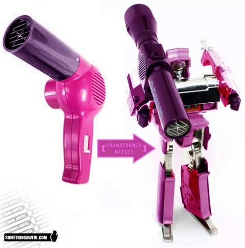 吹风机也当变形金刚,看来擎天柱媳妇身边还要有女保镖。