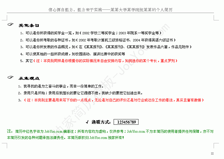 图三:职友网独家简历模板1-1 第三页截图