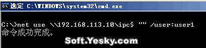 看到这明白了吧!通过功能强大的SQL Server可以做Windows系统管理员能做的事。上面通过SQL Server建立用户的实验是我从本机远程连接到测试机的SQL Server,增加了用户,图7是用刚建立的用户user1和远程计算机建立的ipc连接,这时要进入这台机器就是易如反掌的事了。接下来的的安全知识自己查查吧,网上非常多的。
