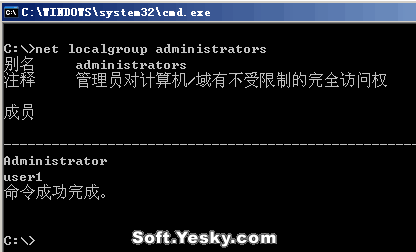 上边输入的 net user user1 /add 和 net localgroup administrators user1 /add是不是很眼熟?它们就是我们上面用过的windows系统下的标准命令。图6可以看出user1已增加到管理员administrators组中。