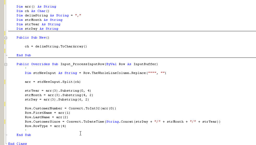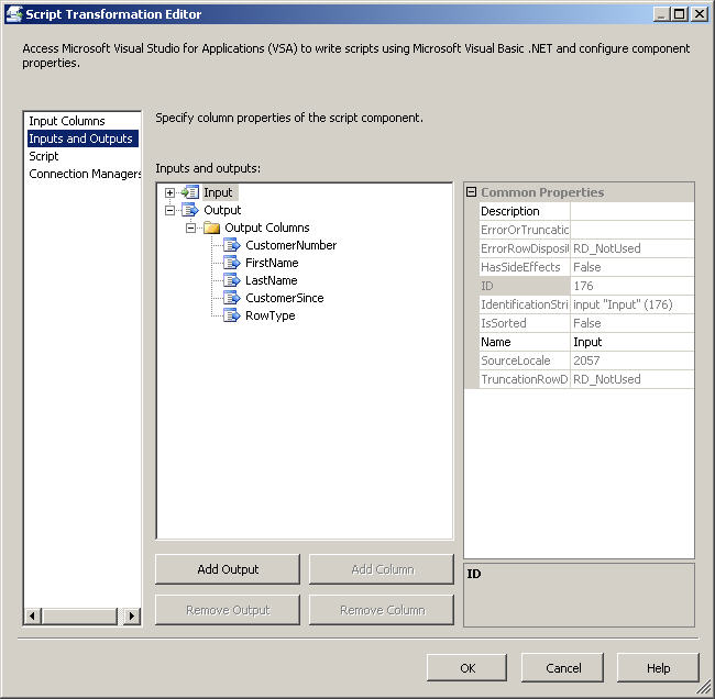 到现在,我们只定义了Script Transform 组件将产生这些列,但并没有具体的指定列中的内容,下面我们可以通过设计以下脚本来实现不同列的内容是什么