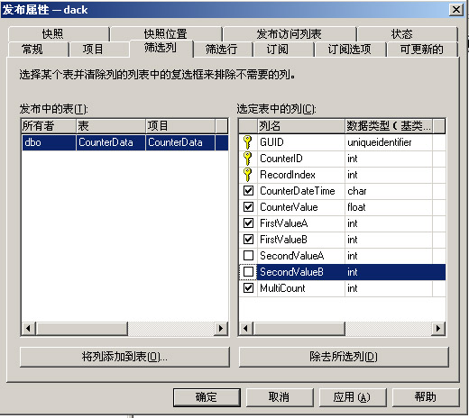 发布表可以做数据筛选,例如只选择表里面的部分列:
