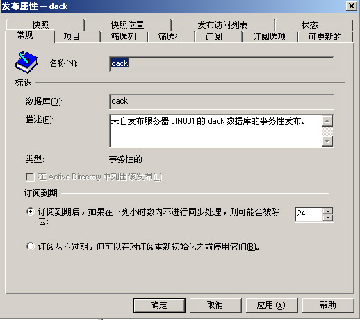 成功建立了发布以后,发布服务器上新增加了一个作业: [ 失效订阅清除 ]