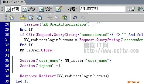 经过对话框,Dremamweaver 为我们生成了大量的代码,参见图2,下面我说说如何增加自己的 Session。