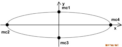 为符合透视规律,要设置mc的属性:透明度、深度等,如图2中mc1的透明度最小,mc2和mc4次之,mc3最大,其它的属性的变化规律与透明度相同。而这些mc都是沿着椭圆运动的,所以要根据mc实时的位置来设置mc的属性。最简单的方法是用mc的y坐标,它的变化规律符合上述特征。还可用mc的x坐标、mc的弧度、mc到椭圆中心的距离等,但必须转换。下面以mc的x坐标为例: