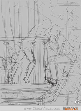 开始人物的姿势不太自然,于是我参考妻子和我自己,重新设计了姿势。我一般在灰色的背景下工作,因为白色太亮并且伤眼睛。