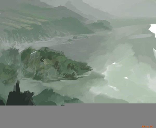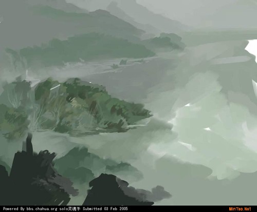 纯粹是我个人的习惯。在我画自已的画之前(非商业),我往往不知道自已要画什么,只是心中有个很模糊的印象。好在电脑提供了方便,画错了可以随便改,更可以重新来过,不会有什么负担。先起大稿,把基调定下来,以及大概的关系。在这一步没必要把哪个东西画得很实在。因为我个人并不知道我要画的最后是个什么确切的东西。一切处在变化之中。根据画面给人的感觉,我会根据它给我的感觉来在脑中构思它可以发展成为一幅什么样的画。有时候这样子可能会比自已最初设想的来得更好。