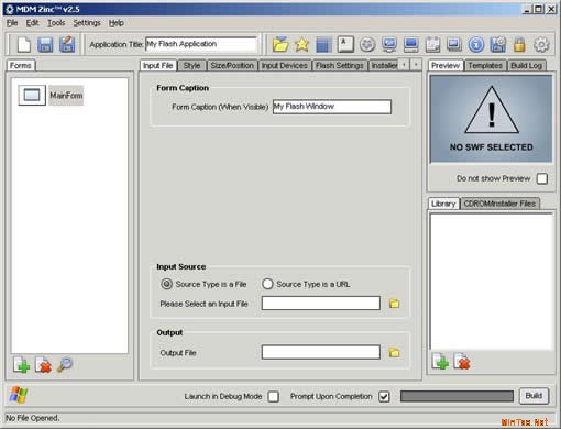 我们要了解的是最有下角的那个按钮 Build ,像当年可让我好找阿。选择了swf之后,按这个按钮就可以生成我们最想要的exe了 中间那块 input file , style 什么的那里可以设置应用程序的风格,内建了好多皮肤常见的都有了 还可以设置打开效果,程序图片什么的,总之好多啦,自己慢慢看一下就知道了
