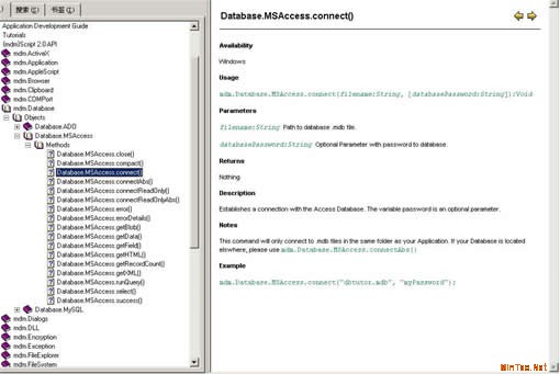 api如何使用?相信看过flash帮助的人都知道,帮助里有所有的函数范例,函数使用方法和说明,zinc帮助同样如此 例如我们要连接一个数据库,那么就找到帮助的相关项目,看看如何使用
