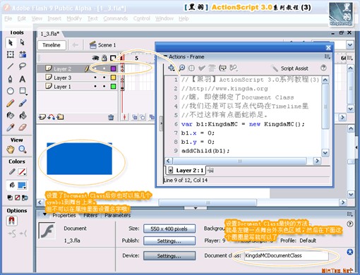 1.新建一个Document Class类。 2.用上之前的那个Kingda.fla,绑定Document Class