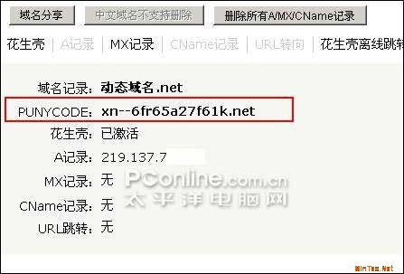 (1)如果域名是在ORAY注册的,那么登陆ORAY的控制台,进入域名管理,在域名状态里面会显示该中文域名的PunyCode。