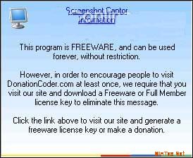 ② 用户可以不下载许可号,这样软件仅是在每次启动时会弹出提示。你可以点击它马上消失;或不理它,几秒钟后自动消失。并且,这几秒钟内也可以正常使用程序(不象Hypersnap,要你等待后才可以);更不会在你使用的过程中弹出骚扰。