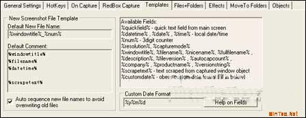 再show一下它的配置,看看下图的页签,就知道它有多强的个性化。仅以截屏后文件取名为例:我指定了(图6)把所截窗口的标题+序号作为文件名,这样,对我的主页所截图片就自动命名为“善用佳软_精品免费软件 - 善用佳软 - 新浪BLOG - Maxthon Browser_001.png”了,方便吧?捕完之后还会有注释信息,记录截屏的程序、时间等信息。我还从未见其他软件也能这样人性化的。这仅是举例而已,它还有8个页签的配置等读者自行研究呢!