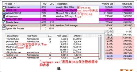 什么是工作集呢?工作集就是在某个时间内,一个进程可以直接访问到的物理内存(不发生缺页中断),简单的可以将其等同于占用的内存空间,而在Windows的任务管理其中,也确实是这样表示的(如图1)。