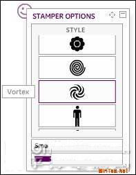 涂鸦前,先点击“TOOLS(工具)”按钮,在下拉菜单中列出了多种笔形、图片、文字样式和背景选项,选中相关选项后,网页中(通常在右上角)就会出现相应的子选项窗口,包括样式、尺寸和颜色等(如图3),通过这些选项可以进一步调整笔触,然后在页面绘图区域拖动鼠标就可以随心涂鸦了。