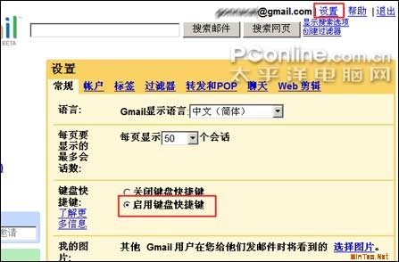 Removes the cursor from your current input field.(PConline注:在中文版Gmail中暂未有效果)