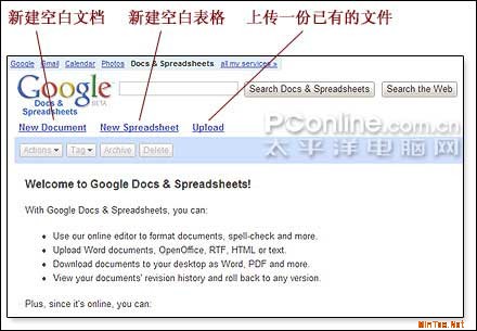 图1 Google Docs & Spreadsheets的初始界面