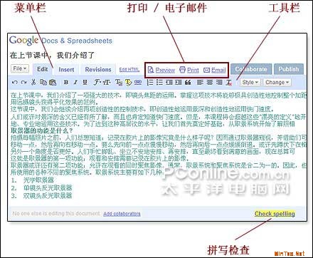 注:由于每款在线式Office在基本功能上都比较类似,所以本文仅以Google Docs为例向大家做以简要介绍。