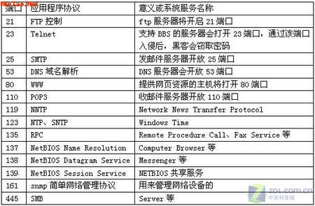 这些端口不允许你使用,它们都有确切的定义,对应着因特网上常见的一些服务,每一个打开的此类端口,都代表一个系统服务,例如80端口就代表Web服务。21对应着FTP,25对应着SMTP、110对应着POP3等(如图1)。
