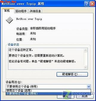 ①137、138、139、445端口:它们都是为共享而开放的,你应该禁止别人共享你的机器,所以要把这些端口全部关闭,方法是:单击“开始→控制面板→系统→硬件→设备管理器”,单击“查看”菜单下的“显示隐藏的设备”,双击“非即插即用驱动程序”,找到并双击NetBios over Tcpip,在打开的“NetBios over Tcpip属性”窗口中,单击选中“常规”标签下的“不要使用这个设备(停用)”,如图3,单击“确定”按钮后重新启动后即可。
