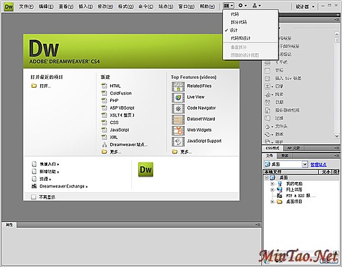 新的Dreamweaver界面与以往大不相同,图标也换新的了,功能好像多了不少。具体功能等有空再慢慢试用吧。
