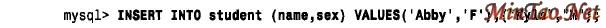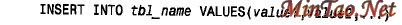 自MySQL3.22.5 以来,这种形式的INSERT 也允许多个值表: