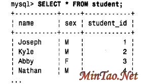 在确实使用一个FROM 子句指定了要从其中检索数据的表时, SELECT 语句的最“普通”的格式是检索所有内容。用“ *”来表示“所有列”。下面的查询将从student 表中检索所有行并显示: