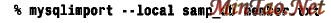 mysqlimport 生成一个LOAD DATA 语句,此语句使member.txt 文件被装入member 表。如果您的MySQL版本低于3 . 2 2 . 15,这个实用程序不起作用,因为--local 选项需要L O A DDATA LOCAL。正如使用mysql一样,如果您需要指定连接参数,可在命令行上数据库名前指定它们。mysqlimport 从数据文件名中导出表名(它将文件名第一个圆点前的所有字符作为表名)。例如,member.txt 将被装入member 表,而president.txt 将被装入president 表。如果您有多个需要装入单个表的文件,应仔细地选择文件名,否则mysqlimport 将不能使用正确的表名。对于如像member1.txt 与member2.txt 这样的文件名, mysqlimport 将会认为相应的表名为