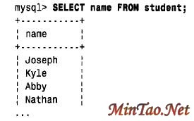 各列按它们MySQL在表中存放的次序出现。该次序与发布DESCRIBE student 语句时显示的列次序相同。(例子末尾的“. . .”表示此查询返回的输出行比这里显示的还要多。)可明确地命名希望得到的一列或多列。如果只选择学生名,发布下列语句: