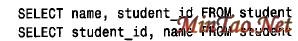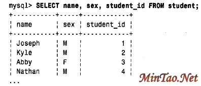 如果名字不止一列,可用逗号分隔它们。下列的语句与SELECT * FROM student 等价,只是明确地指出了每一列: