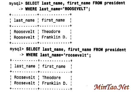 大小写。MySQL允许您一次从多个表中选择列。我们将这个内容留到“从多个表中检索信息”小节去介绍。