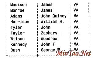 在用表达式表示一个需要逻辑运算的查询时,要注意别混淆逻辑与运算符与我们平常使用的“与”的含义。假如希望查找“出生在Vi rginia 的总统与出生在Maryland 的总统”。应该注意怎样表示“与”的关系,能写成如下的查询吗?