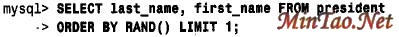 自MySQL3.23.2 以来,可按照一个公式来排序查询结果。例如,利用ORDER BYRAND( ) 与LIMIT 结合,从president 表中随机抽取一个记录: