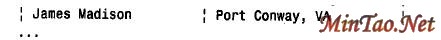 此查询把名和姓连接起来,中间间隔一个空格,将总统名形成一个单一字符串,而且将出生城市和州连接在一起,中间隔一个逗号,形成出生地。
