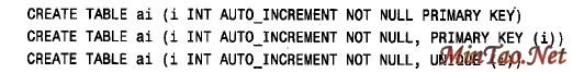 ■ 插入0 到AUTO_INCREMENT 与插入NULL 到列中的效果一样。插入一行而不指定AUTO_INCREMENT 列的值也与插入NULL 的效果一样。