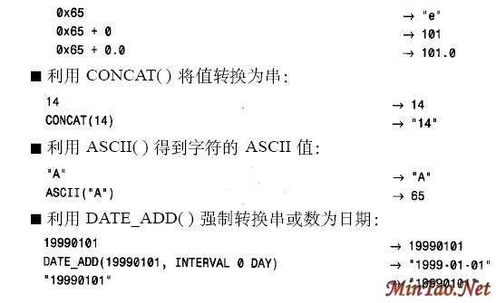 如果不能肯定某个值的使用方式,可以利用MySQL的表达式求值机制将该值强制转换为特定的类型: