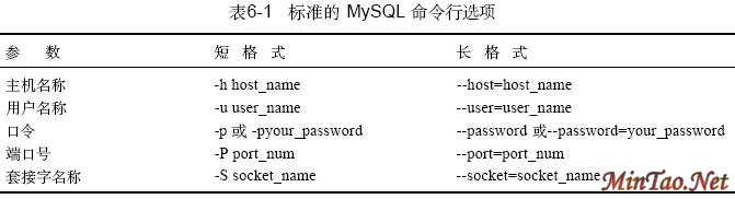 现在我们有了容易修改的防止出现错误的连接代码,我们要了解一些如何做某些比使用NULL 连接参数更灵巧的事情,如在运行时允许用户指定一些值。客户机程序3由于固定连接参数方面的缺陷,要想更改那些值中的任何一个,都必须编辑源文件并重新编译。这十分不方便,特别是想使程序用于其他人时。在运行时指定连接参数的一个通用的方法是使用命令行选项。MySQL分发包中的程序接受两种形式的连接参数,如表6 - 1所示。