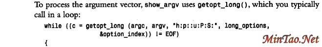 为了处理参数向量, show _ argv() 使用getopt_long() ,它在循环中调用: