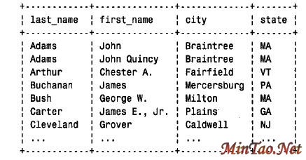 ■ 可以确定列的数据类型。可以看出列是否是数字的,是否可能包括二进制数据等等。在前面的6.6.1节“处理返回结果集的查询”中,我们编写了从结果集的行中以制表符分隔的形式打印出结果的process_result_set() 程序。这对某些目的是很好的(例如要把数据输入到电子制表软件中),但对于可视化检查或打印输出,就不是一个漂亮的显示格式。回忆前面的process_result_set() 版本,产生过这样的输出: