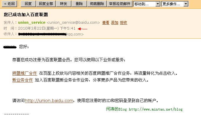 昨天下午五点四十一分,我收到了一封《您已成功加入百度联盟》的邮件,内容截图大致如下: